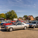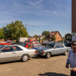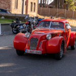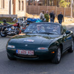 De parking aan de kerk stond de hele namiddag vol met oude auto’s, evenals de naburige straten. Op de parking aan de zaal van het Buurthuis waren bijzondere moto’s en brommers te bewonderen, ook de lichte oude bromfietsen 50cc.